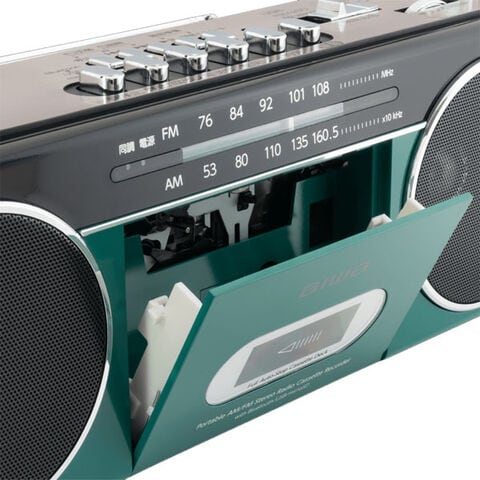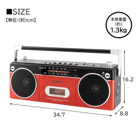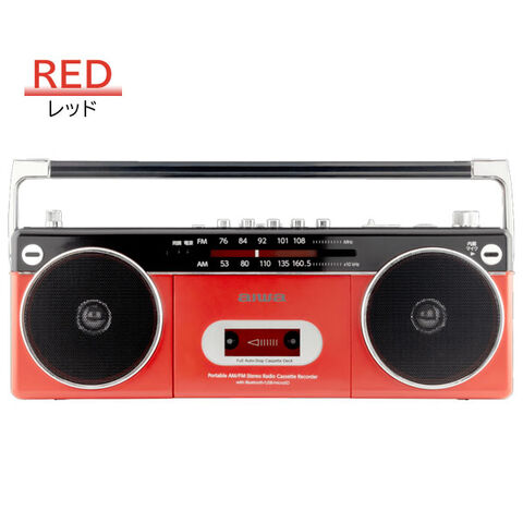 カセットテープの録音再生に加え、Bluetooth(R)レシーバー機能やUSBメモリ・microSDカードの録音/再生機能も備えた現代版ファッショナブルラジカセ。AM/ワイドFMラジオ受信も可能で、乾電池とコンセントの2WAY電源式なので、万が一の非常用の情報源としても活躍します。3Wステレオスピーカー×2搭載。別売マイクを繋いで拡声器としても使えます。持ち運びやすいハンドル付き。カラーは鮮やかなレッドと深いグリーンで、インテリアを彩るアイテムとしてもおすすめです。