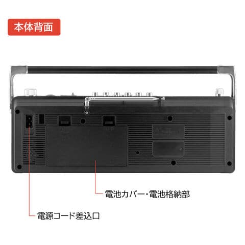 | カセットデッキ | 使用可能カセットテープ:60分まで ノーマルタイプ(Type I)ステレオ再生 ※ハイポジ(Type II)/フェリクロム(Type III)/メタル(Type IV)の再生は可能ですが、ノーマルタイプ相当の音質となります。 |