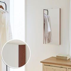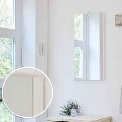 割れない鏡シリーズに超軽量で使いやすいサイズの「リフェクス・エア」が登場!重さは一般的なガラス鏡の約1/6なので、ダルマピンだけで簡単に壁に吊り下げることが可能です。表面はフィルムなので強い衝撃により破損しても破片が飛散せず安心。一般的なガラス鏡に比べ、光のくすみが少なく自然な色合いを映し出します。両脇のフレームカラーはお好みやお部屋の雰囲気に合わせて、ブラウンとホワイトからお選びいただけます。