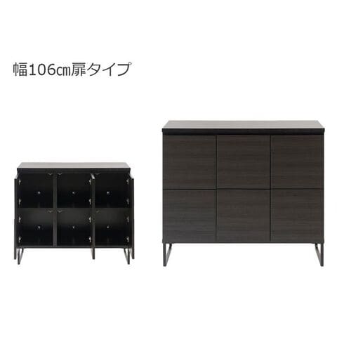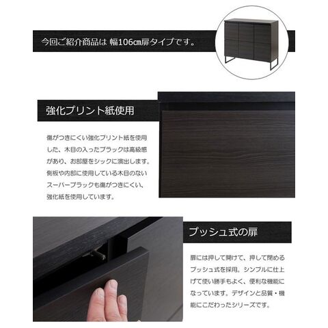 スクエアキャビネット 扉タイプ 幅106cm スタイリッシュブラック 木製リビングボード ラック ST-0002-NS