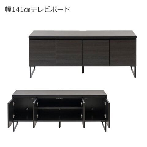 スクエアキャビネット テレビボードタイプ 幅141cm スタイリッシュブラック 木製リビングボード ラック ST-0008-NS