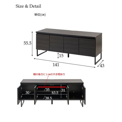 サイズ(約) 本体/幅141×奥行43×高さ55.5(脚15含む)cm