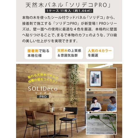 壁に貼れる天然木パネル 11枚組 プレミアム 約1.66平方メートル 接着剤で貼る本格仕様 ソリデコプロ SOLIDECO PRO SLDCPR-11P