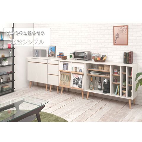 ベーシック×洗練のコラボにより生まれた北欧シンプルライン。小ぶりでありながら、存在感があるのは脚のシャープ感と2トーンの配色が生む絶妙なバランス。扉付きキャビネットはリビングボードとしてリビングのあらゆるものをしまっておくのに大活躍。取っ手のないプッシュ式扉がすっきりとデザイン性もアップ。軽やかな印象の小ぶり感はいろいろなタイプと組み合わせてお洒落な雑貨が映える空間を演出してくれます。安心・安全の日本製。届いてすぐにお使いいただける完成品(脚部のみ取付け)です。