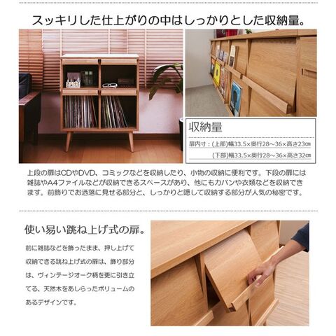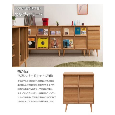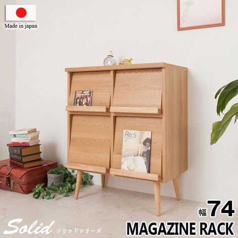 キャビネット マガジンラック 跳ね上げ式扉 リビング収納 幅74cm 北欧 ヴィンテージ 天然木脚 日本製 完成品 Solid ソリッド ナチュラル NK04-016NA-NS