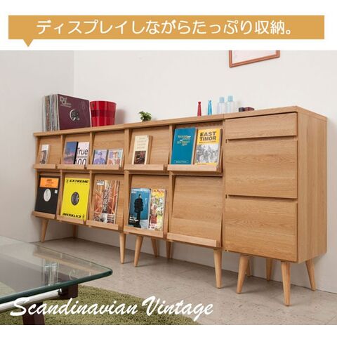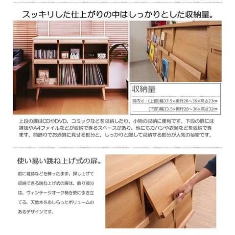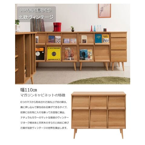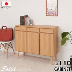 キャビネット マガジンラック 跳ね上げ式扉 リビング収納 幅110cm 北欧 ヴィンテージ 天然木脚 日本製 完成品 Solid ソリッド ナチュラル NK04-017NA-NS