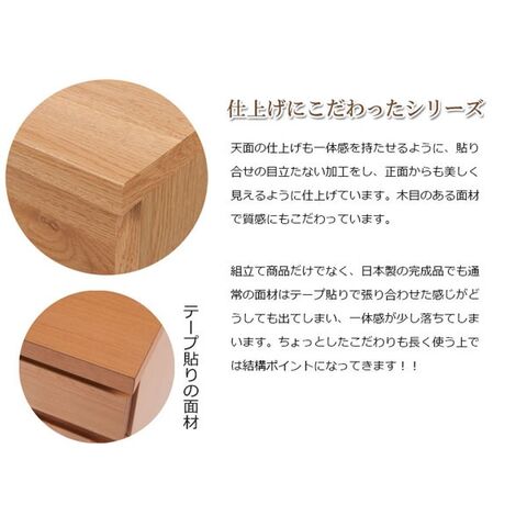 | 材質 | 前板・天板/強化プリント紙化粧繊維板、脚部/天然木ラバーウッド(ウレタン樹脂塗装)、その他/プリント紙化粧繊維板 |