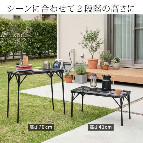 | 仕様 | 【テーブル】 高さ2段階調節、サイドトレイ付き、組立時間の目安/2人で約10分 【チェア】 折りたたみ式 |