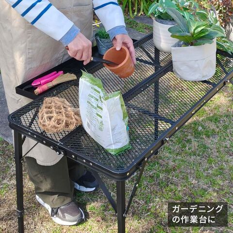「折りたたみメッシュテーブル3点セット」はアルミフレーム採用で驚きの軽さを実現。お庭やテラス、ベランダ、ウッドデッキなどで広げるだけで、スマートで機能的なガーデンセットとして活躍します。折りたためば超コンパクト。公園、キャンプ、運動会、釣りなどアウトドアシーンはもちろん、店舗のディスプレイ、イベント什器など、ボーダーレスに活躍します。タフでありながら、どこへでも持ち運べる軽量設計。一瞬でその場を「特等席」に変えてくれます。2脚付属のミドルディレクターチェアは、ブラック・モスグリーン・サンドベージュの3色からお選びいただけます。