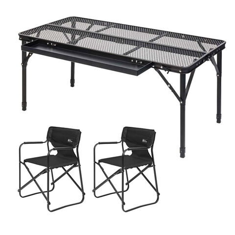 メッシュテーブル 幅90cm 折りたたみ 3点セット チェア2脚 高さ調整 キャンプ アウトドア バーベキュー コンパクト 軽量 アルミフレーム TENT FACTORY meets GARDEN STF-CMT90-3PS