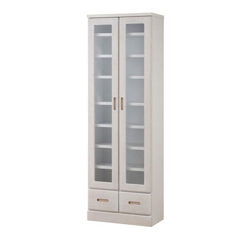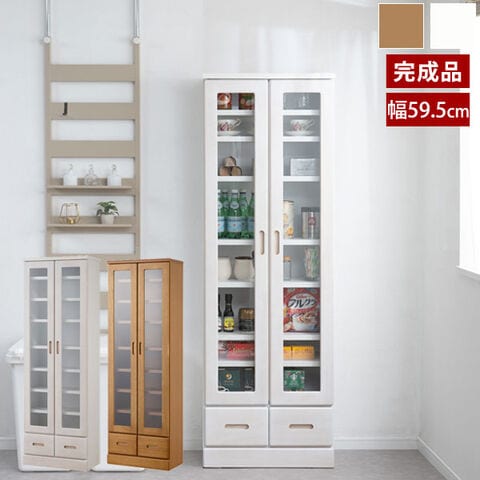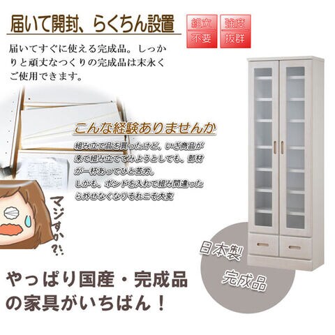 天然木薄型食器棚 キッチン収納 幅59.5cm ガラス扉 完成品 TAIYAKI タイヤキ 桐材 リビングボード 日本製 KE-0022