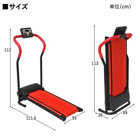 | サイズ(約) | 使用時/幅55×奥行111.5×高さ113cm 収納時/幅55×奥行26×高さ113cm 歩行スペース(ベルト部)/幅27×奥行80cm 電源コード長/1.9m |