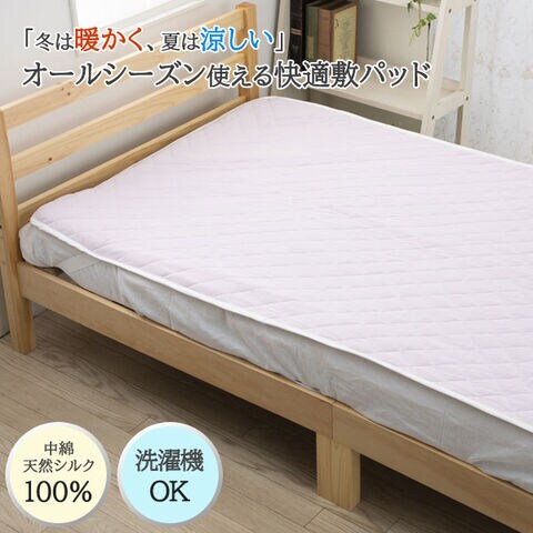 洗える手引き真綿敷パッド シングル 100×205cm 冬は暖かく 夏は涼しい 中綿シルク