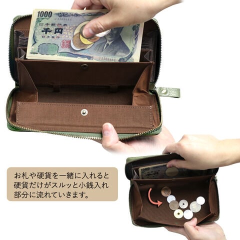 紙幣と硬貨を自動で仕分けられる、簡単収納の牛革ジャバラコインスルー長財布。お札入れの底部がボックス式小銭入れに繋がっており、お札と硬貨を一緒に札入れにしまえば、硬貨だけがスルッと小銭入れ部分に流れていきます。大容量のボックス式小銭入れの開閉はホック式。とても大きな収納になっておりますので、たくさんの硬貨でも種類が見やすく出す時も便利です。カードは3枚の6列、合計18枚のカードを収納可能。がばっと開いて見やすいジャバラ式のカード入れは、縦入れでどこにどのカードがあるかも簡単に判別できます。熟練の職人がてがけた上質な牛革製の長財布は使い込むほどに手にしっくりと馴染み、長く愛用していただけます。カラーはブラック・オリーブ・キャメル・ブルー・イエローの5色からお選びいただけます。