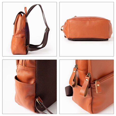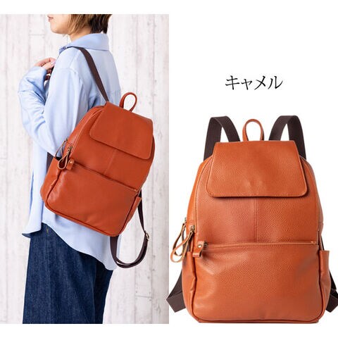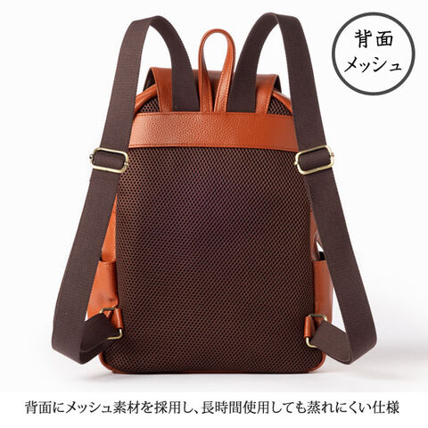 メイン開口部はファスナーとかぶせマグホックできちんと開閉。二重の開閉で安心です。引手はループ状の革を使用することで人差し指をひっかけて楽に開閉できます。ソフトで柔らかな牛革シュリンク素材なので、荷物が増えてもたっぷり収納できます。背面にメッシュ素材を採用し、長時間の使用でも蒸れにくいのもポイントです。ビジネスからカジュアルまで、あらゆるスタイルに馴染んでくれます。カラーはブラック、キャメル、ベージュの3色からお選びいただけます。
