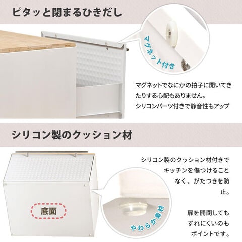 | 材質 | 【本体・扉】スチール(エポキシ粉体塗装) 【天板】バンブー集成材(ラッカー塗装) 【取っ手】ステンレススチール |