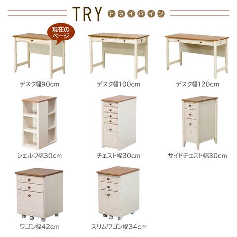 カントリー調デスク 幅90cm トライパイン kiduku おしゃれデザイン 天然木 tryp90d-LI