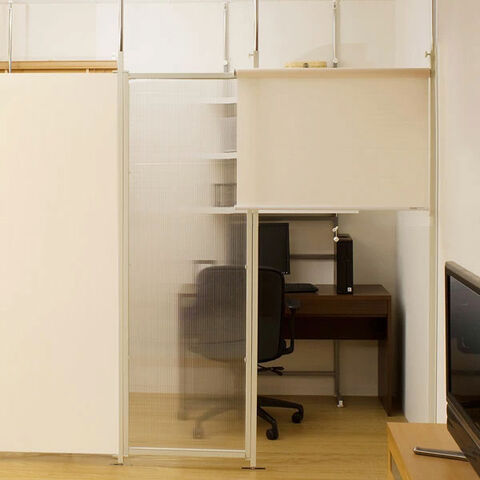 天井に突っ張らせて設置する日本製のパーテーションボード。簡単にお部屋を間仕切りすることができます。天井までの高さはお部屋により異なりますが、天井の高さに合わせて201〜260cmに無段階に調整することができるので様々なお部屋に設置することができます。1枚だけならただのパーテーションですが、このパーテーションは別売りの連結用ボードを継ぎ足せば多彩にアレンジすることができます。また、連結機構は90度の角度でも取り付けが可能なため、横に並べるだけでなく、コーナーを設けることも出来ます。目隠しのパネルは清潔感のあるホワイト、温かみがあり落ち着いた印象のナチュラル、半透明のお洒落な波状のクリア、モダンな雰囲気のダークブラウンの4タイプ。すべて同一タイプで間仕切ったり、アクセントに半透明のクリアタイプを加えて使用することもできます。