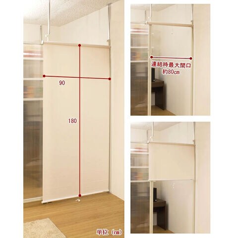 | サイズ(約) | 本体/幅92×奥行12× 高さ201~260cm ロールスクリーン/幅90×高さ180cm 補助金具脚/奥行11cm |