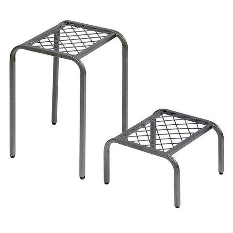 室内・屋外どちらでも使えるタフな素材で、角の丸みがスチールの硬質さにやわらかな印象をプラス。玄関先のシューズラックや、お店の什器としてもお洒落。幅や高さの違うスタンドを組み合わせることで立体感のある演出が可能です。カラーはマットなブラック、艶のあるゴールド、艶のあるグレーの3色からお選びいただけます。
