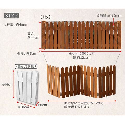 置くだけで空間が仕切れる、木製のミニフェンスです。自在な形に変えることができ、一人立ちするので使い勝手抜群です。お庭に小さなドッグランを作ったり、ペットの飛び出し防止に使ったり、殺風景なベランダをオシャレに変身させたり・・・。アイデアしだいで、様々な場所にお使いいただけます。カラーはホワイトとライトブラウンの2色からお選びいただけます。