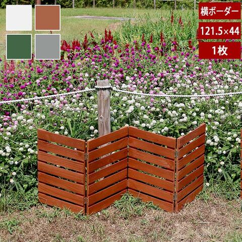 人気の木製ミニフェンスに、ボーダータイプが新登場!ボーダーの天然木フェンスは爽やかでナチュラルな風合いが魅力。必要な時にさっと広げるだけで設置が完了し、しまうのも簡単。ペットの飛び出し防止に使ったり、殺風景なベランダをおしゃれに変身させたり。通路、花壇、玄関、駐車場、お隣との境目など、アイデア次第で様々な場所で活躍します。カラーはホワイト、ライトブラウン、グレー、ダークグリーンの4色展開です。