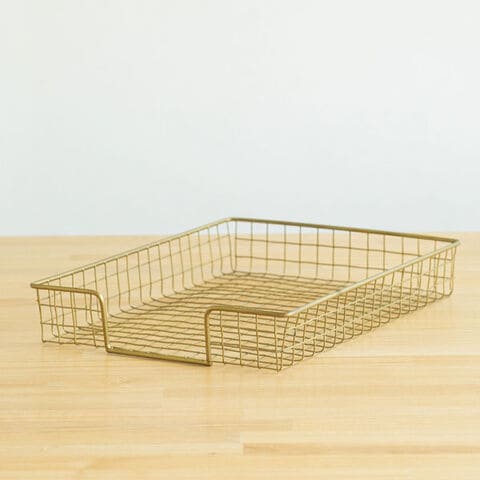 アンティーク風な質感のワイヤー素材が魅力のペーパートレーはA4サイズの書類やペーパー類をすっきりと収納できる実用性と、空間を上品に彩るインテリア性を兼ね備えたアイテム。デスクの上ではもちろん、キッチンやトイレなど、さまざまなシーンでお使いいただけます。可愛らしい雰囲気やきれいめテイストにおすすめのゴールド、ヴィンテージ感がありスッキリとした印象のアンティークグレーの2色展開でインテリアに合わせてお選びいただけます。インテリアの雰囲気を格上げしてくれる存在感で、見せる収納としておすすめのアイテムです。