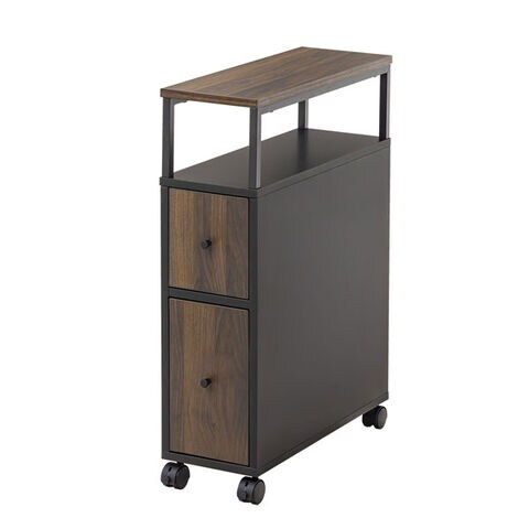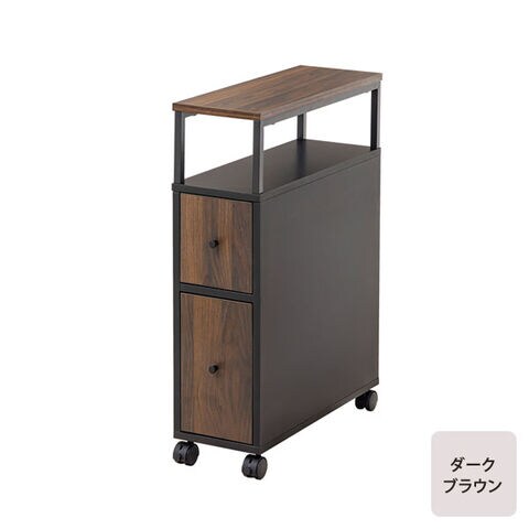 スペースを取らず、狭い空間にも置ける省スペース設計のトイレラック。前面には高さの違う引き出し2杯、背面にはブラシ収納棚付き。天板下はオープンタイプで収納する物はアレンジ自在です。本体は全てメラミン素材加工&スチール部分は粉体塗装仕上げなので、水に強く汚れにくい仕様。背面のブラシ収納棚の棚板は5段階に高さを変更できるので、ブラシ以外の物の収納も可能です。天板スペースにはグリーンやディフューザーを置いたり、スマホのちょい置き場所としてもお使いいただけます。お掃除の時にも移動が楽なキャスター付きです。