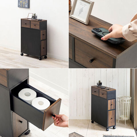 多機能トイレラック 引き出し付き 省スペース トイレ掃除道具入れ キャスター付 WJ-2402DBR-SH