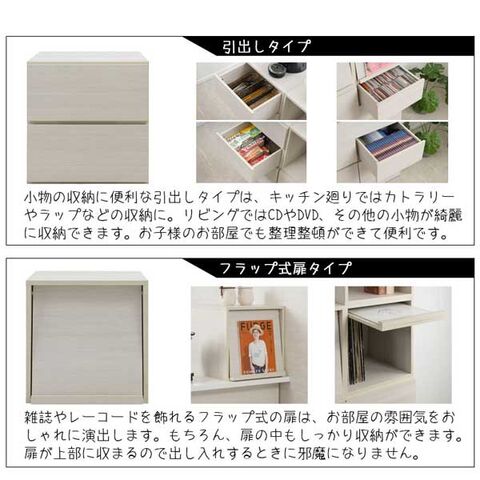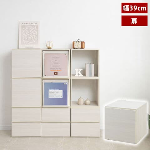 ユニットボックス キューブBOX 扉 ホワイトウォッシュ木目 幅39cm 収納家具 組み合わせ FY-0183-NS