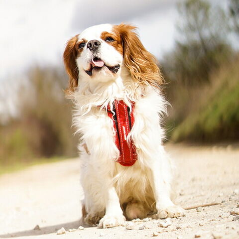 引っ張られる力をチェストプレートで緩和する、軽量かつ丈夫なハーネスです。ストラップに過度な圧力が加わって、毛や肌が擦れたりするのを防ぎます。2本の独立したストラップでサイズ調整が可能で、激しい動きにも対応しています。反射機能付き。