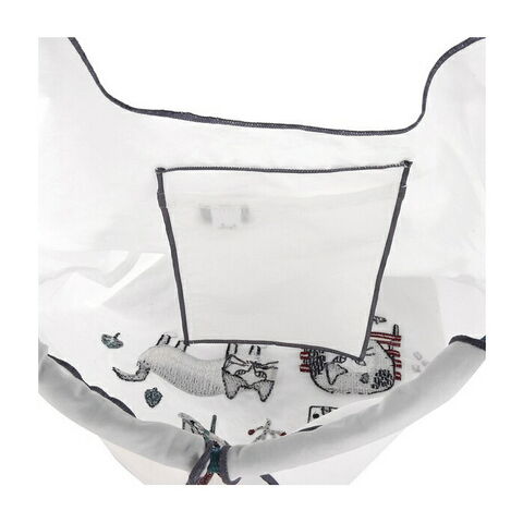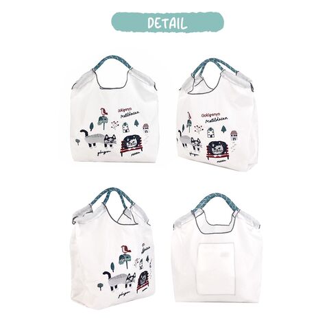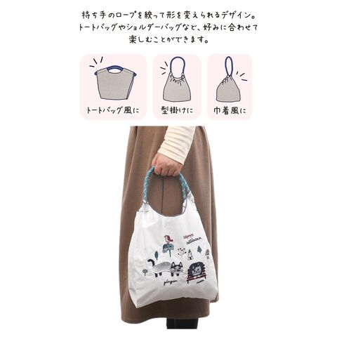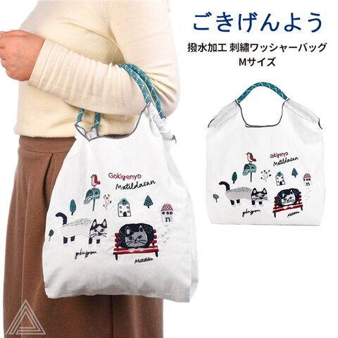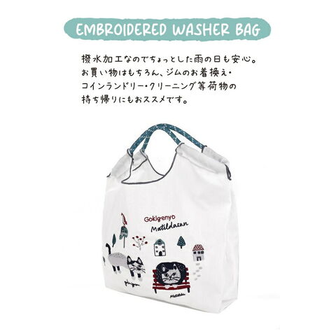 [KUSUGURU] クスグルジャパン ごきげんよう マチルダさん 撥水加工 刺?ワッシャーバッグ Mサイズ 白 ホワイト ハンドバッグ ショルダーバッグ 折り畳める サブバッグ エコバッグ 旅行バッグ 猫 24-7150