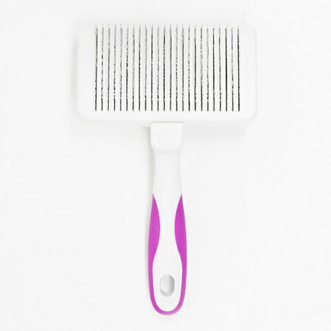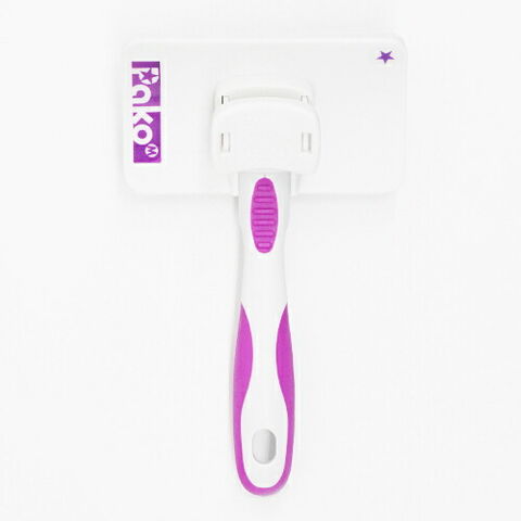 ブラシ面とラバーにひと工夫!。ブラシ面は曲線構造で、わんちゃんの体にピッタリフィットします。ピンはステンレス製なので、錆びにくく、強度もあります
