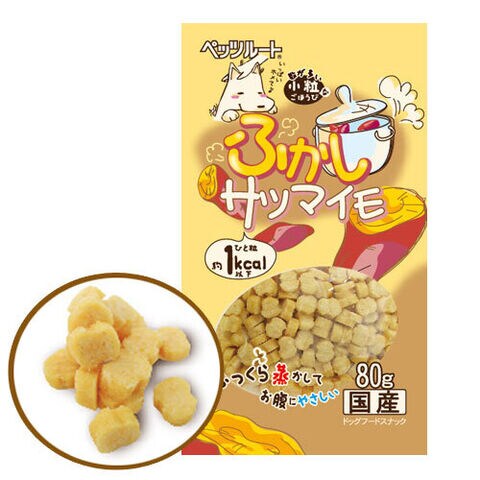 小麦粉、鶏ささみ、さつま芋パウダー、ショートニング、ソルビトール、プロピレングリコール、膨張剤、保存料(ソルビン酸K)、pH調整剤、食塩、食用色素(黄4・黄5)、酸化防止剤(エリソルビン酸Na)、香料