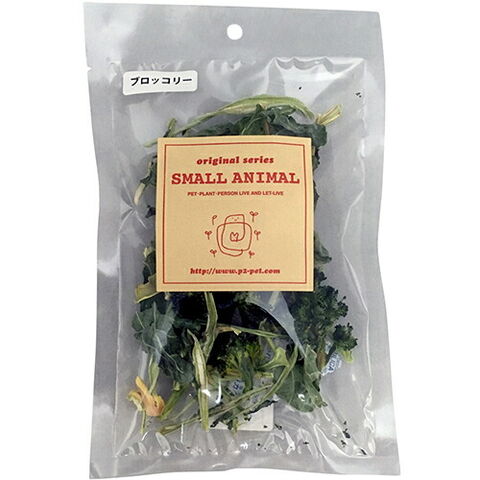 おひさまの光をいっぱい浴びた里山の恵みを優しく低温で乾燥させ、おいしさをぎゅっと凝縮。収穫したての色・味・香りを楽しめるように乾燥時間や温度を最大限に追求した逸品です。ハムスター・デグー・チンチラ・モルモット・ウサギなど小動物には嬉しい食事のバリエーションに、また小鳥たちには齧って遊んで抓まんで食べて安全なおやつというか、おもちゃでもあります。ブロッコリーは、低脂肪・低カロリー・高繊維で、ビタミン類が豊富で疲労回復、かぜ予防、ガン予防、老化防止に効果が期待され、また豊富に含まれる葉酸は、DNAの合成や調整に深く関与し、正常な細胞の増殖を助ける働きがあり、葉酸が不足すると精神神経異常が起こると言われています。