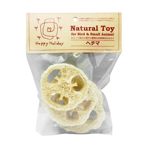 一緒に暮らす動物たちが少しでも幸せを感じることができるように自然素材をそのまま活かした安全安心の小鳥・小動物用のおもちゃです。漂白も着色もしていませんので食べても安心なので、どんどん齧らせてください。市販の小鳥・小動物用おもちゃのパーツの追加や代用にも使用できるスライスタイプ。ヘチマの繊維の間に種やおやつを埋め込んで知育玩具にするのもおすすめです。ロープを通したり、止まり木ひっかけやすい穴も開いていますので、工夫次第で遊びのバリエーションが広がります。