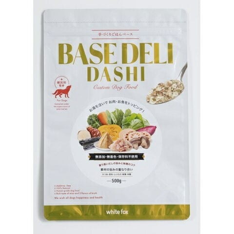 ベースデリだしはだしの素材の旨み最大限活かした食材(かつお・昆布・しいたけ・味噌・米麹)を使用し、香り高いだしの旨みと味噌のコクが特徴です。ワンちゃんの好みや体質に合わせたお肉やお魚などをトッピングすれば手軽に「うちの子専用ごはん」が作れます。