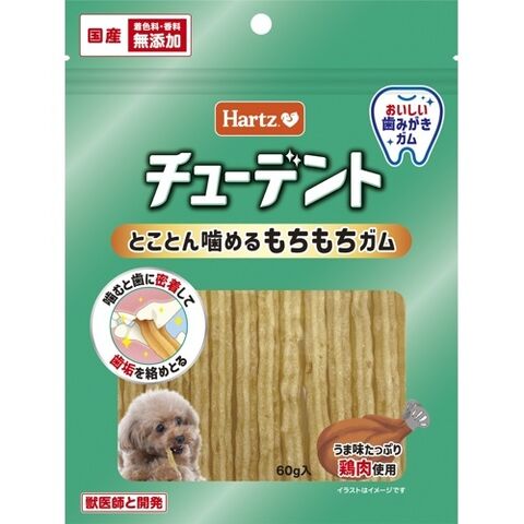 ●ソフトなのにとことん噛める新食感歯みがきガム!●弾力のある食感+うまみたっぷり鶏肉仕様で食いつき抜群。●もちもちしているから歯に密着し、凹凸が歯の表面の歯垢をこそげ取る!