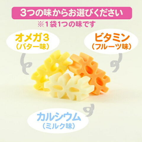 ライスパウダー、コンスターチ、マルチトール、イソマルトオリゴ糖、グリセリン、ゼラチン、グリセリン脂肪酸エステル、ビタミンMIX(B1・B2・B6・D3・E)、ミックスフルーツ香料、パプリカ色素