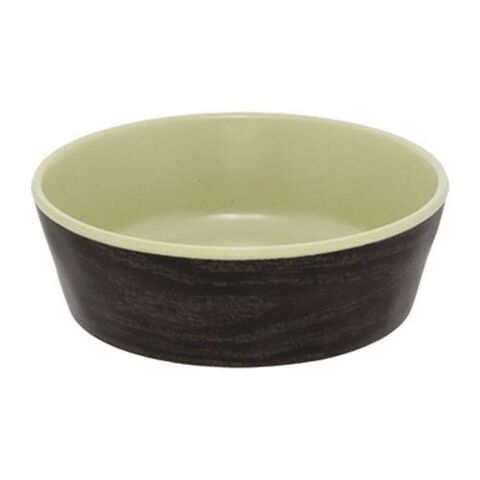 マットな質感が特徴的な、落ち着いた木目調デザインのメラミン樹脂ボウル。
