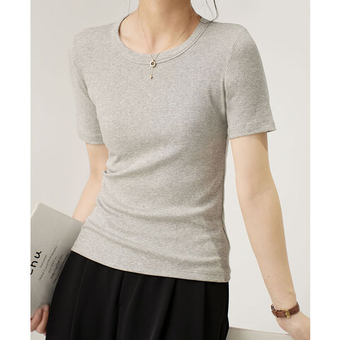 カットソー Tシャツ レディース トップス リブ デイリー 半袖 肌触りの良い素材 大きいサイズ きれいめ 夏 ナチュラル おしゃれ 透けにくい 透けない オフィス スーツ シンプル カーキ ブラック ホワイト 5622189【水沐良品】