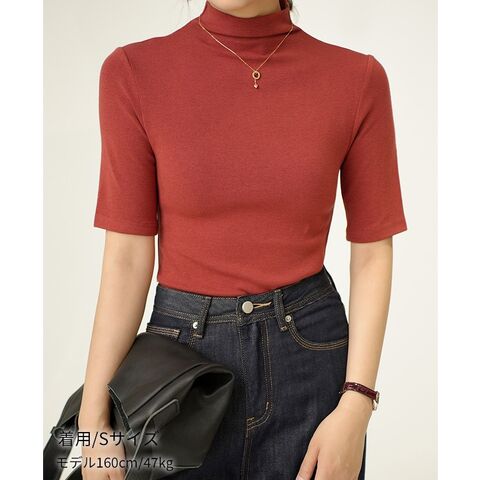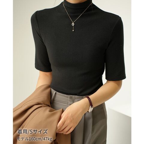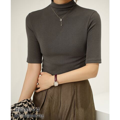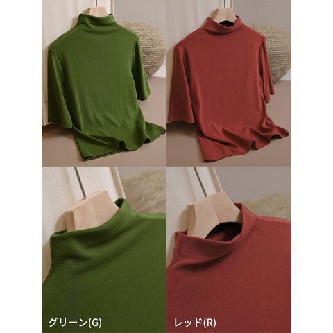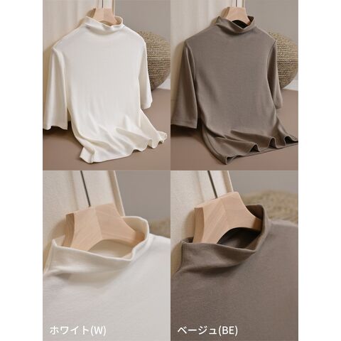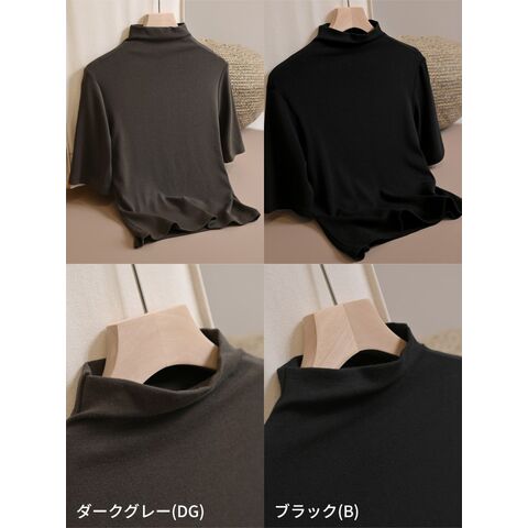 スイモク 保温 極暖 ハイネック レディース トップス Tシャツ 5分袖 春 秋 冬 インナー 伸縮性 蓄熱 通勤服 仕事服 オフィスカジュアル 無地 タートルネック 薄手 フィット カジュアル シンプル 重ね スリム OL あったか 5623362【水沐良品】
