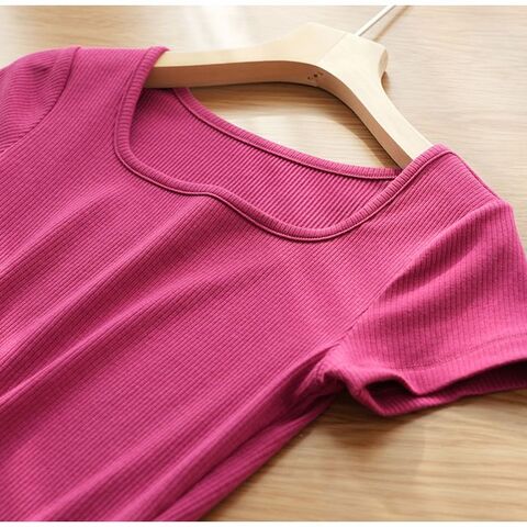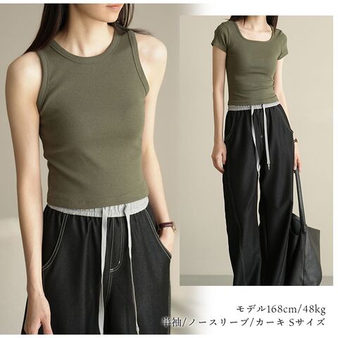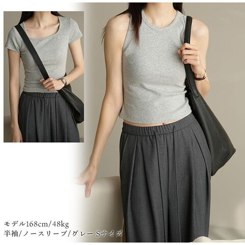 スイモク カットソー 半袖 ノースリーブ レディース Tシャツ シンプル トップス きれいめ 大きいサイズ 夏 春 リブカットソー トップス 可愛い 洗える スーツ インナー ストレッチ 無地 ベーシック オフィス 5623445【水沐良品】