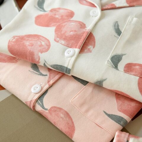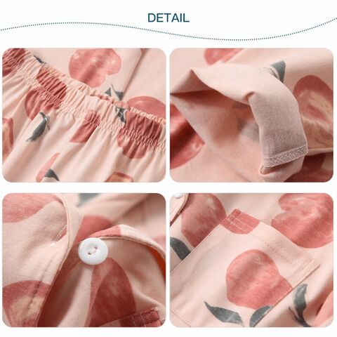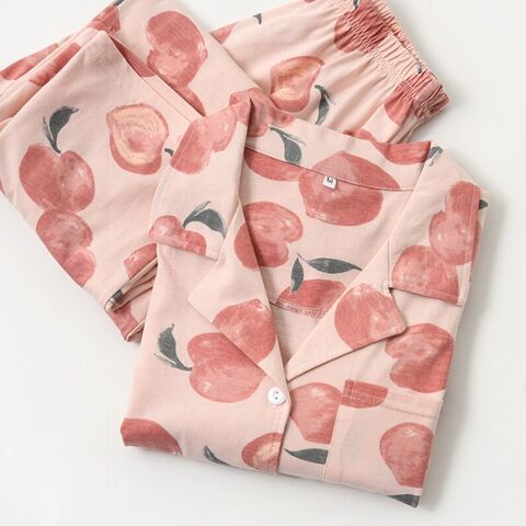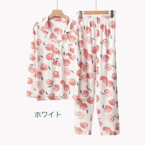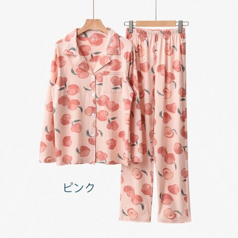 スイモク 【送料無料】パジャマ 前開き コットン 綿100% 桃柄 もも 着心地良い ゆったり レディース パジャマ Vネック 上下セット 長袖 女性 防寒 ホームウェア 寝間着 部屋着 結婚祝い プレゼント5676713【水沐良品】