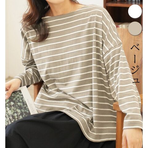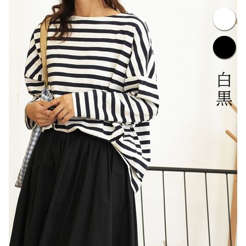 ボーダートップス Tシャツ レディース 長袖Tシャツ カジュアル ボーダー柄 ゆったり ロンT カットソー プルオーバー ロングtシャツ ルームウエア ゆったり オールシーズン オシャレ 無地 女性用 肌着 重ね着 綿 大きいサイズ 5682205