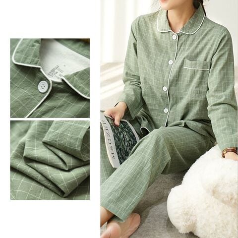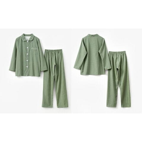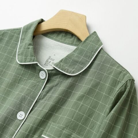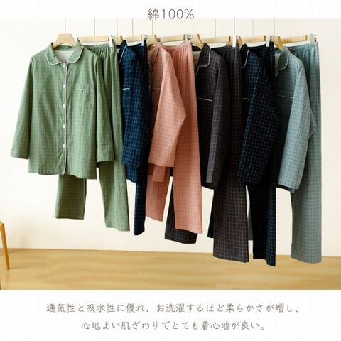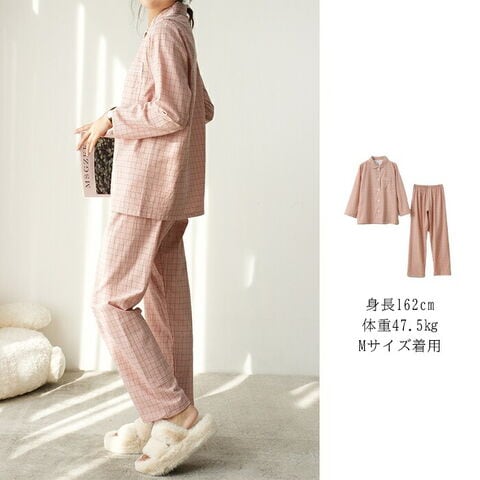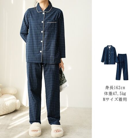 ペアパジャマ カップル 冬 前開き コットン 着心地良い 暖かい ゆったり レディースパジャマ メンズパジャマ チェック柄Vネック 上下セット 無地 シンプル 綿100% 長袖 男性 女性 防寒 ホームウェア 5683361【水沐良品】