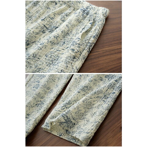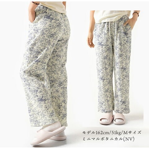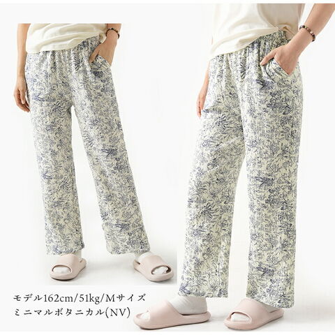 綿100% コットン100% ダブルガーゼ 二重ガーゼ 天然素材パンツ 肌に優しい素材 敏感肌向け 通気性 吸湿性 ルームウェア パジャマボトム ナイトウェア 部屋着 リラックスウェア お昼寝パンツ 夏用パジャマ 快眠ウェア ウエスト総ゴム ナチュラルカラー 北欧柄 花柄パンツ 大人かわいい ガーゼズボン 夏用 蒸れにくい 暑さ対策 冷房対策 Mサイズ Lサイズ XLサイズ ルームパンツ 入院用 母の日 プレゼント ギフト