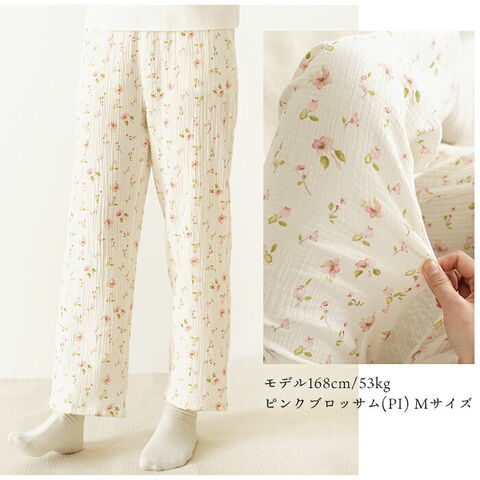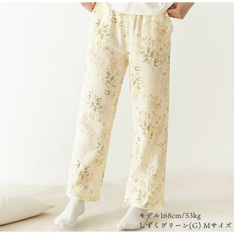二重ガーゼ ルームパンツ ダブルガーゼ 綿100% レディース パジャマ ガーゼ 綿 肌に優しい ロング丈 ルームウェア ポケット付き 春 夏 コットン 長ズボン 可愛い ナチュラル 薄手 軽い 快適 部屋着 総柄 花柄 5688811 スイモク【水沐良品】