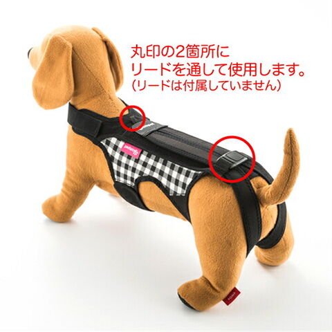 足腰が衰えなどで足腰の弱ったワンちゃんの立ち上がりや歩行をサポート。ハーネス(胴輪)感覚で装着し、快適な散歩をサポート。