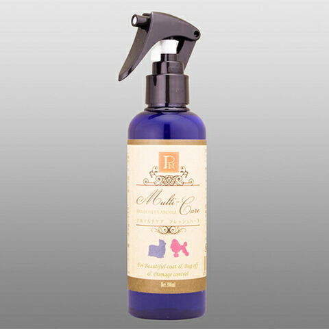 毛艶アップ・ダメージケア・虫よけの3つの効果のマルチケアスプレー。○ホホバオイルとオリーブスクワランが被毛に潤いを与え、しっかりコーティング。○シルクが紫外線などの外部ストレスから被毛を守ります。○虫よけ効果のニームオイルも配合。○ブラッシングスプレーとしてはもちろん、夏は虫よけ+UVダメージ対策、冬は乾燥&静電気対策に。オールシーズン使えます。○ペットアロマをベースにした、爽やかなハーブが香るフレッシュハーブの香り。